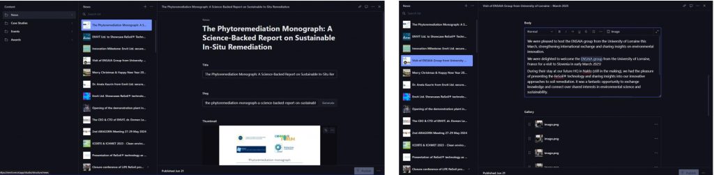 Slovensko podjetje Envit d. o. o. je bilo eno izmed prvih, ki je objavilo izziv na platformi INDUSAC. Kot tehnološko napredno zagonsko podjetje na področju okoljskih tehnologij in inženiringa so najbolj znani po prelomni in z več patenti zaščiteni tehnologiji ReSoil® za remediacijo tal. Sama tehnologija omogoča učinkovito, hitro in stroškovno dostopno odstranjevanje strupenih kovin in metaloidov iz različnih vrst tal na kraju samem s pomočjo zaprtega postopka brez emisij in odpadnih voda. ReSoil® ohranja in obogati zemljo kot funkcionalni naravni substrat, sama tehnologija pa je združljiva z biološkimi postopki za odstranjevanje organskih onesnaževal.