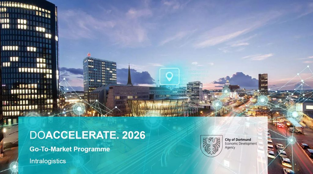 Nemška organizacija City of Dortmund Economic Development Agency do 28. februarja 2026 sprejema prijave na uveljavljeni trimesečni pospeševalni program DOACCELERATE. 2026 za vstop na nemški trg intralogistike.